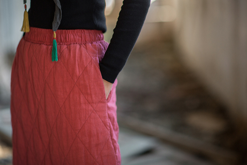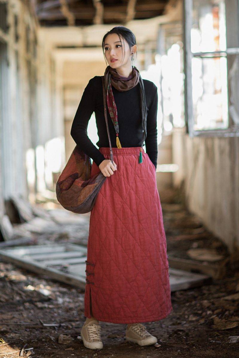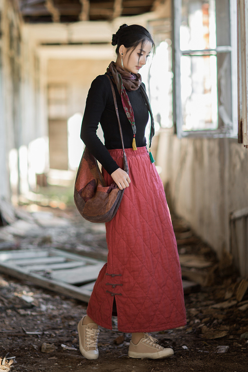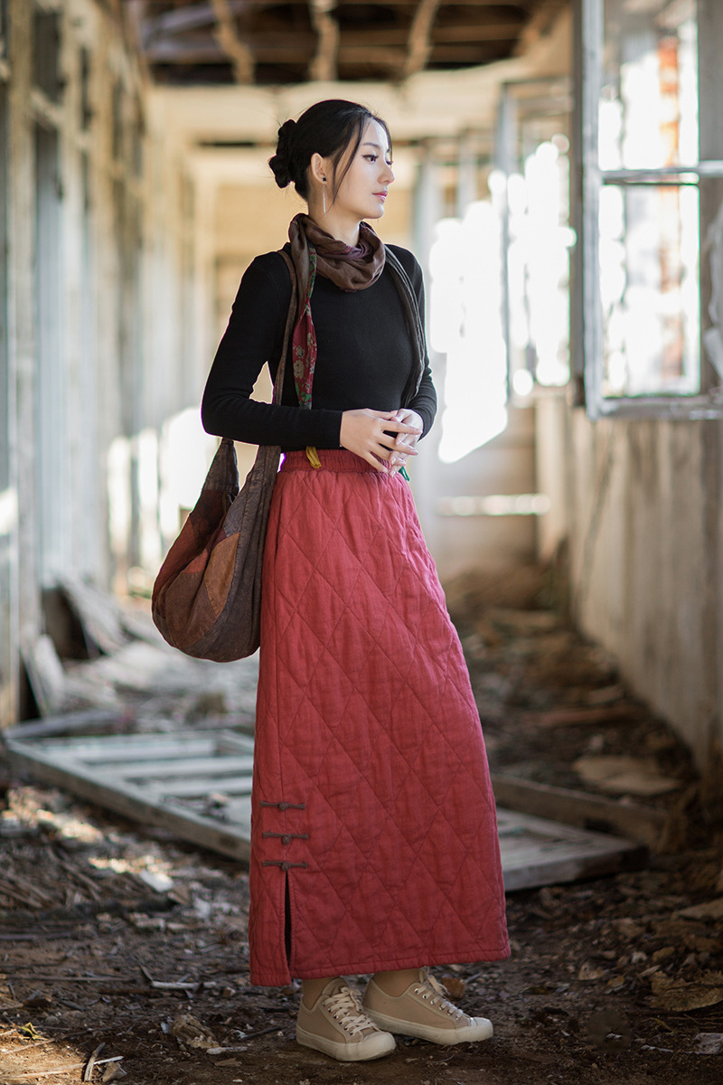 ● 款式:長裙,絎縫,開叉,鬆緊腰
