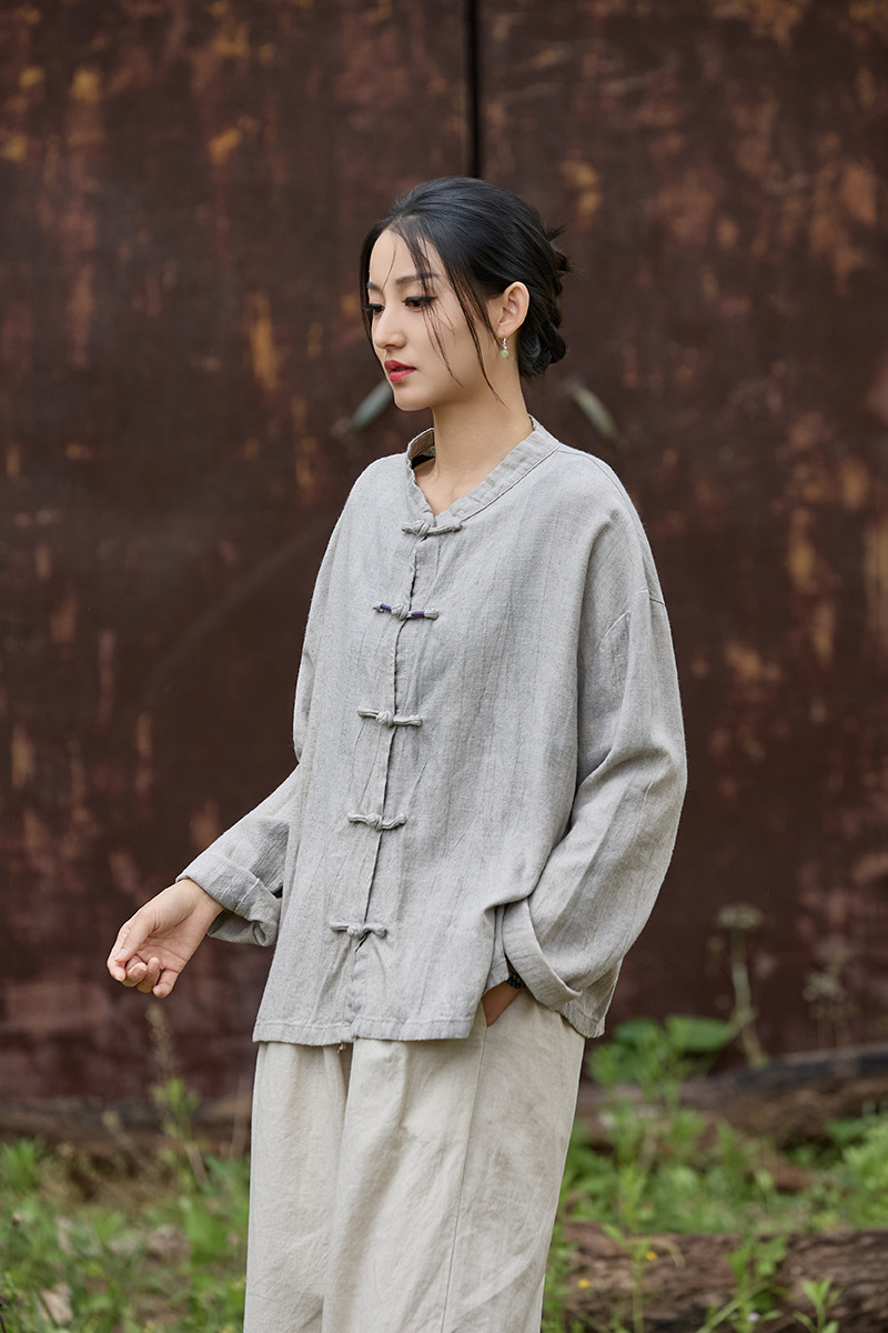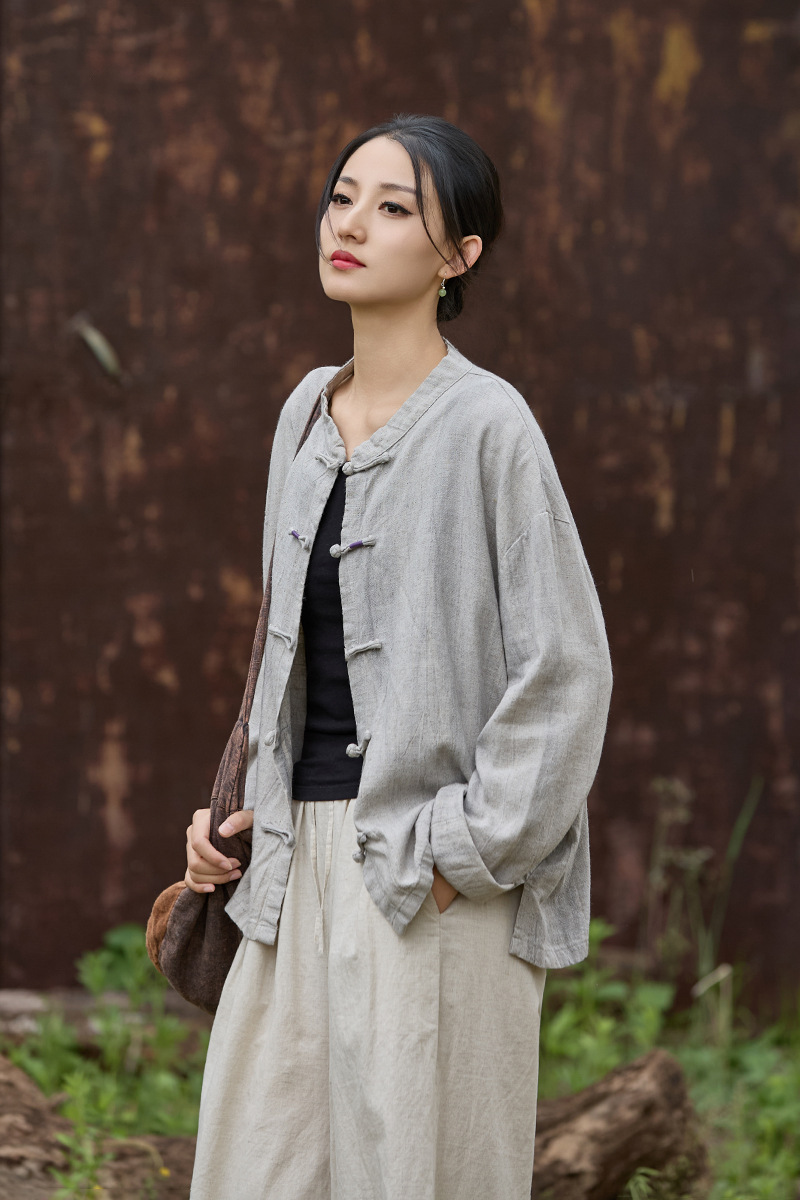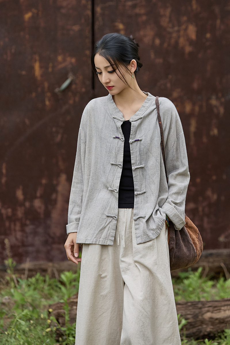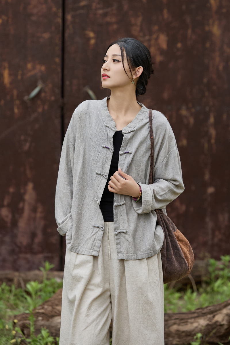 禪意素雅 · 「紮染開襟衫」寬鬆對襟盤扣防曬襯衫
